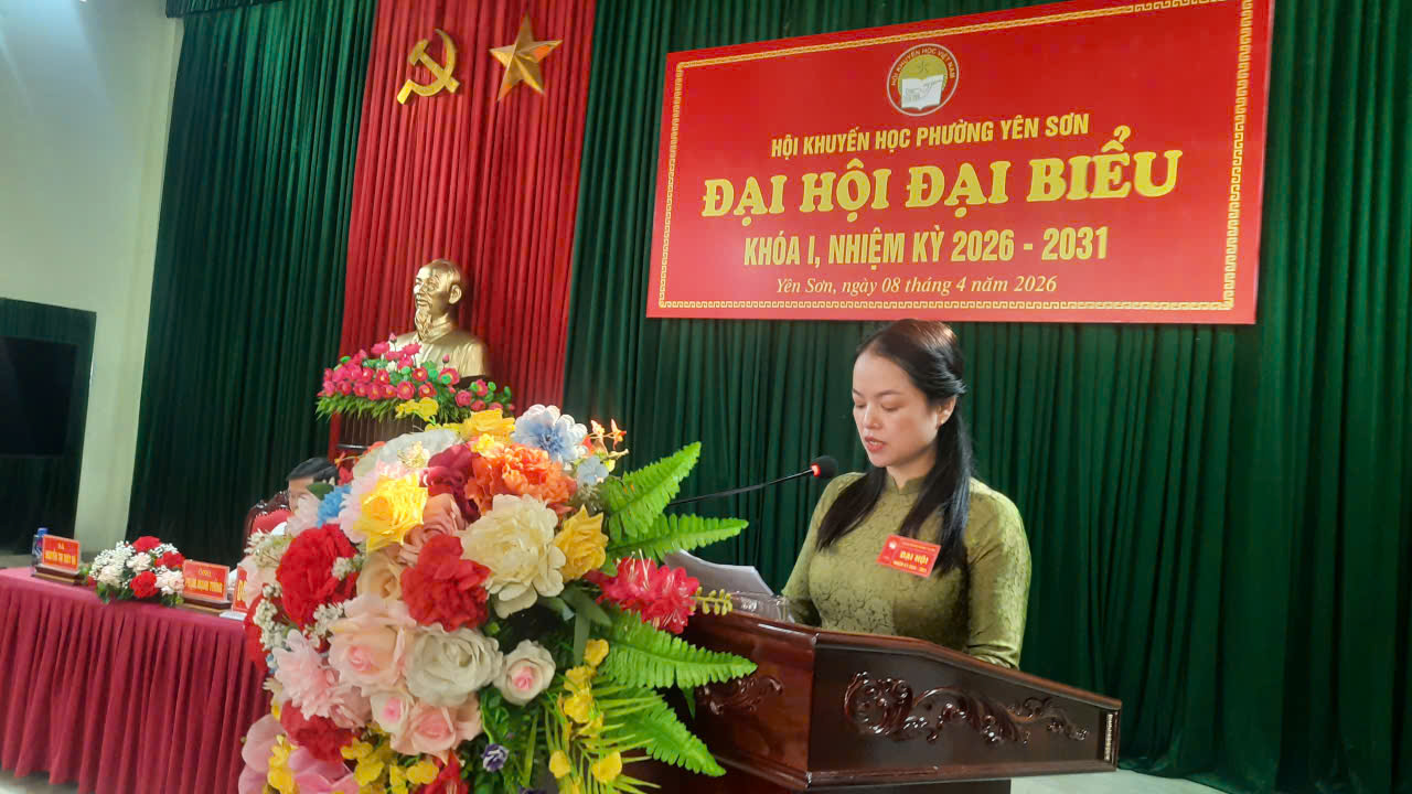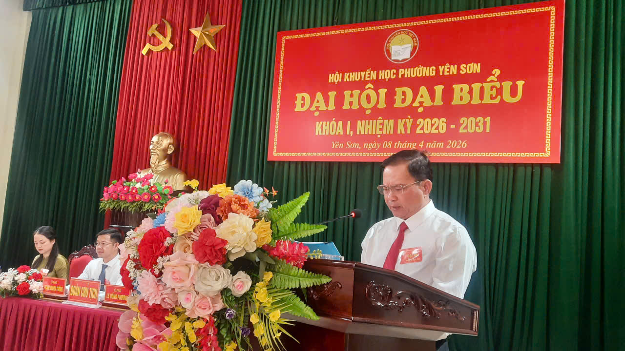 Thực hiện sự chỉ đạo của Hội khuyến học tỉnh Ninh Bình, được sự nhất trí của thường trực đảng ủy, thường trực HĐND, lãnh đạo UBND, UBMTTQ phường Yên Sơn, sáng ngày 8/4/2026 Hội khuyến học phường Yên Sơn đã tổ chức Đại hội đại biểu lần thứ I, nhiệm kỳ 2026-2031.