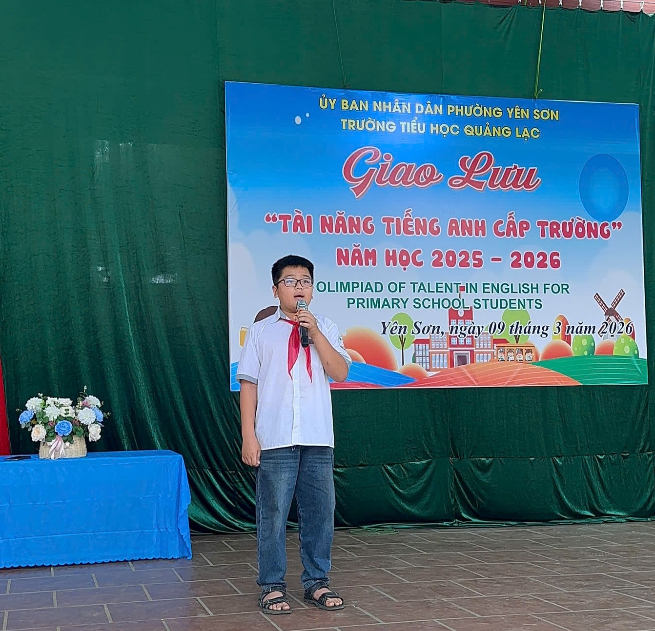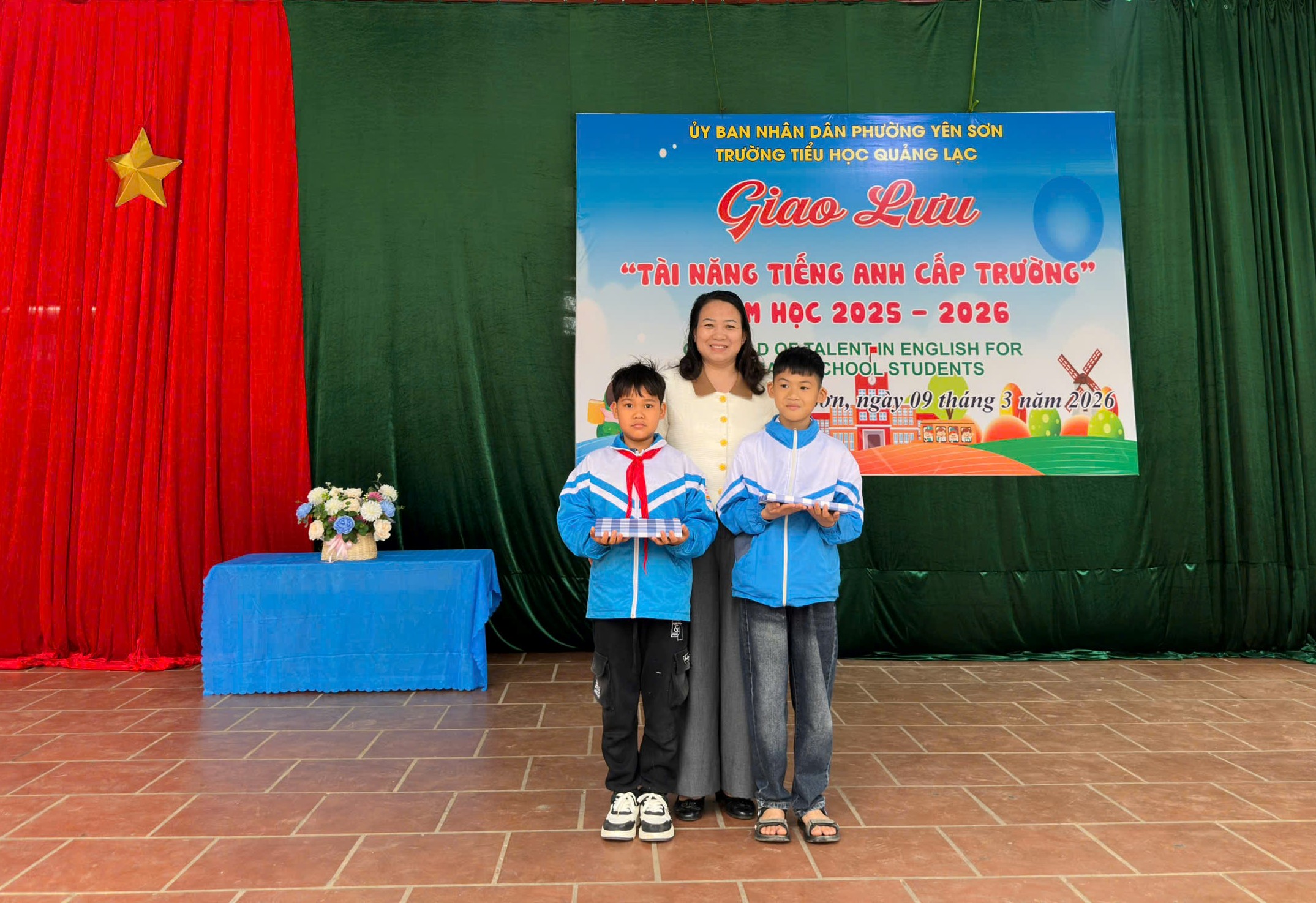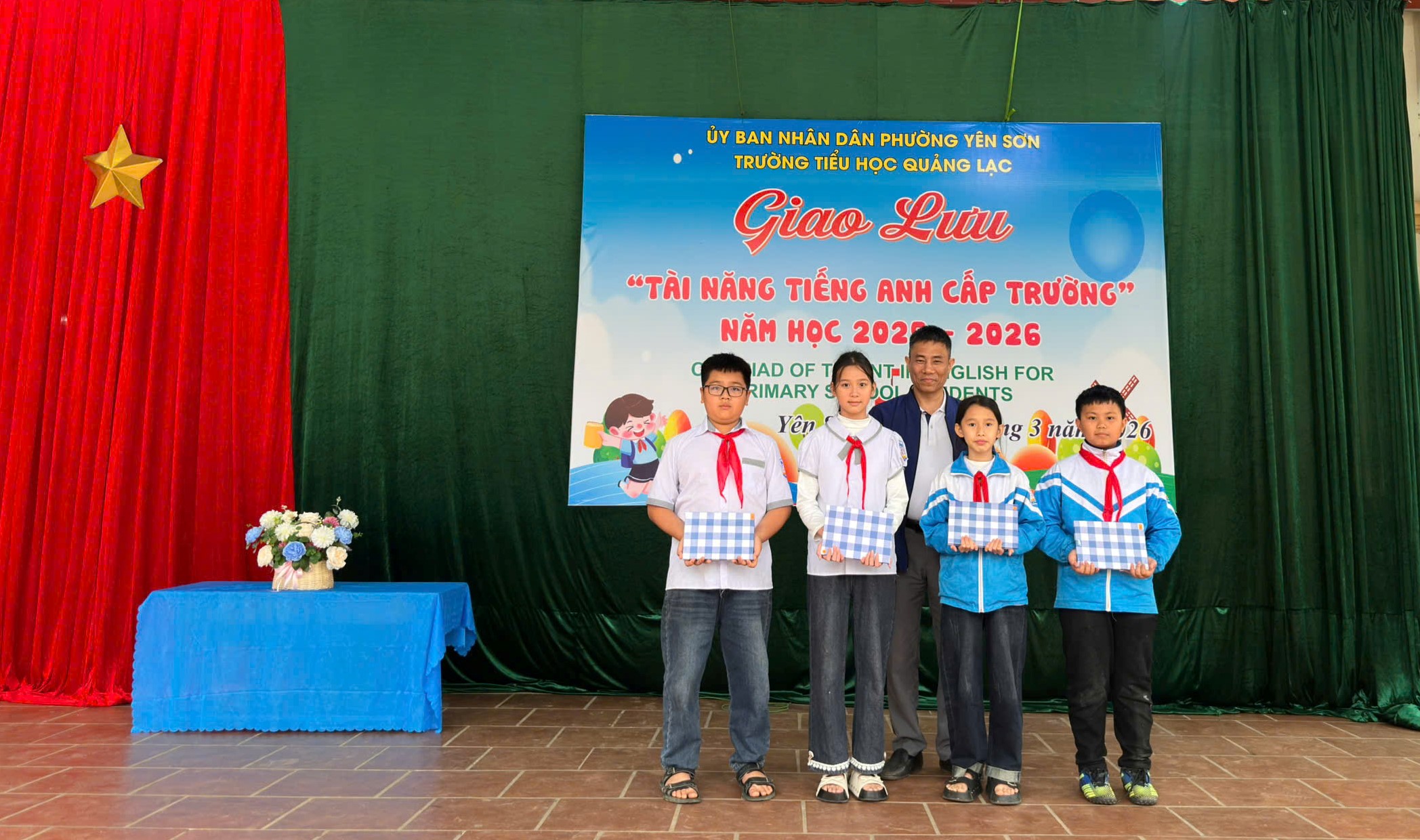 Nhằm mục đích: Xây dựng môi trường ngôn ngữ nhằm giúp học sinh tiểu học có thể sử dụng tiếng Anh và thực hành những kỹ năng được học một cách tự nhiên và hiệu quả. Tạo môi trường giao lưu, học hỏi, trao đổi kinh nghiệm cho giáo viên và học sinh năng lực sử dụng tiếng Anh trong học tập, giao tiếp, quản lý và các hoạt động giáo dục trong các cơ sở giáo dục tiểu học. Tạo sân chơi lành mạnh, sôi nổi, bổ ích, thu hút học sinh tham gia góp phần đa dạng các hình thức tổ chức, đổi mới phương pháp dạy, học, kiểm tra, đánh giá môn Tiếng Anh. Ngày 4 và ngày 9 tháng 03 năm 2026 trường Tiểu học Quảng Lạc đã tổ chức giao lưu “Tài năng tiếng Anh cấp trường”