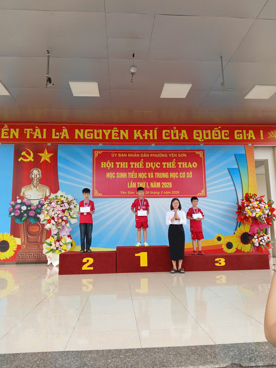 Kết quả đã chọn được 2 vận động viên bóng bàn, 2 vận động viên cờ vua 2 vận động viên bật nhảy xa và 2 vận động viên chạy 60m xuất sắc để đi tham gia Đại hội TDTT phường Yên Sơn lần thứ I vào các ngày 26 và 27 tháng 3.