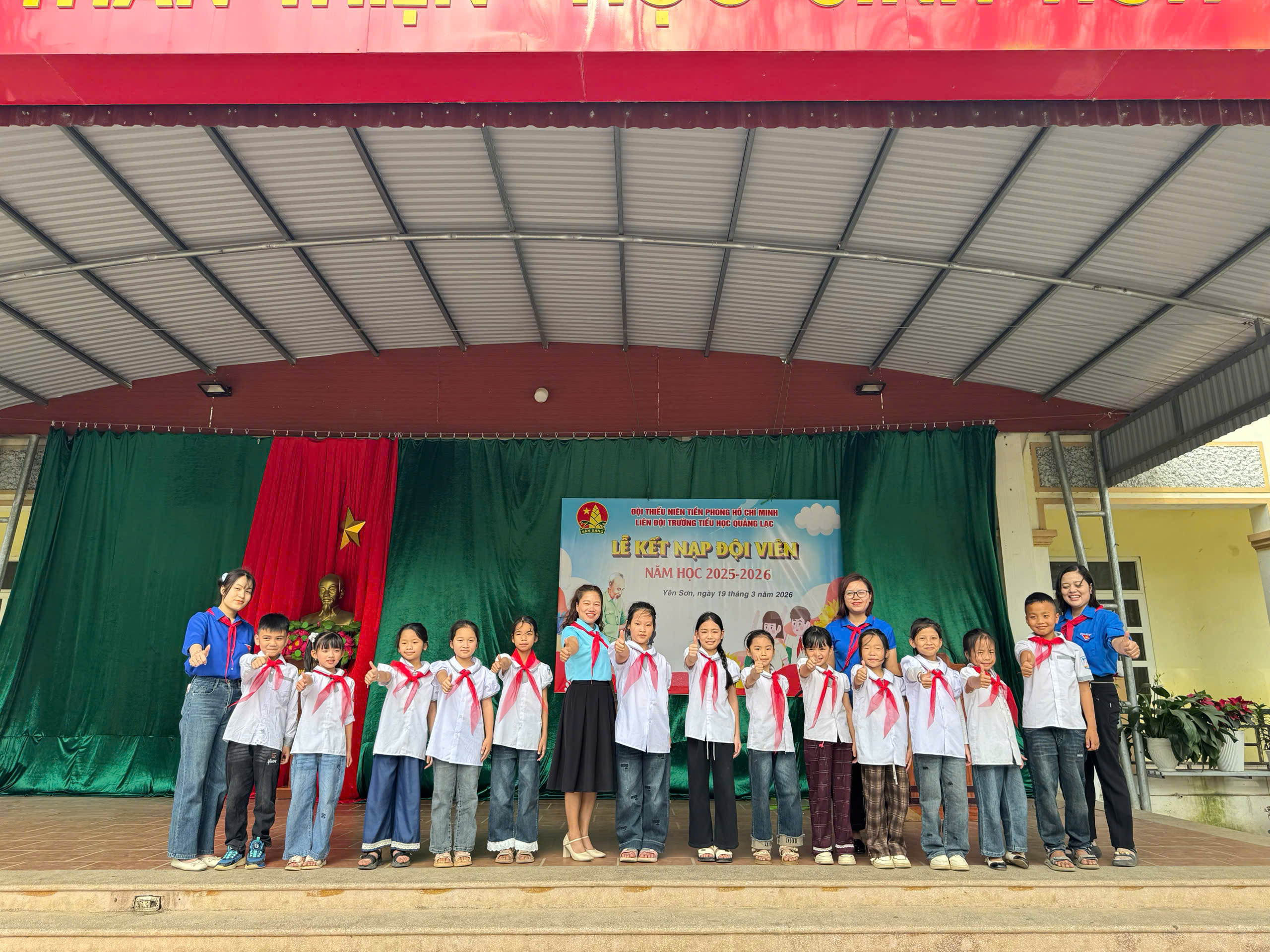 Nhân dịp kỷ niệm 95 năm Ngày thành lập Đội TNTP Hồ Chí Minh (15/5/1941-15/5/2026). Được sự nhất trí của Chi bộ, Ban giám hiệu nhà trường, chiều ngày 19 tháng 3 năm 2026, Liên đội trường Tiểu học Quảng Lạc đã long trọng tổ chức lễ kết nạp Đội viên cho 167 em Nhi đồng khối lớp 3 có nguyện vọng đứng trong hàng ngũ của Đội.